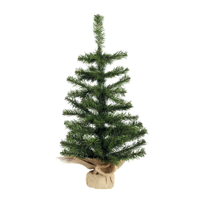 Bell’alberello di Natale con una base ricoperta di tela di sacco. Potete decorarlo con ciondoli o palline che troverete nella nostra sezione di decorazioni per l’albero.