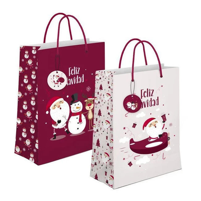 Sacchetti di carta con motivi natalizi ideali per distribuire i vostri regali questo Natale.