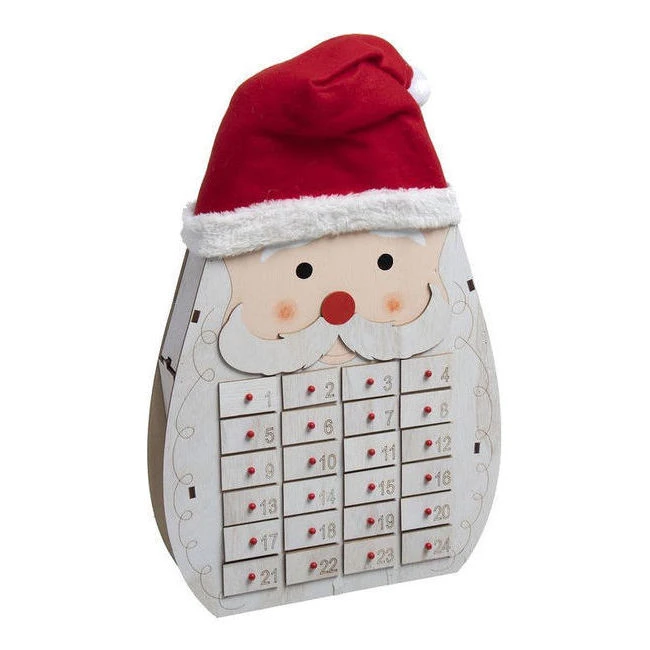 Il calendario ha la forma di un pupazzo di Babbo Natale ed è dotato di un piccolo cassetto per ogni giorno del mese.