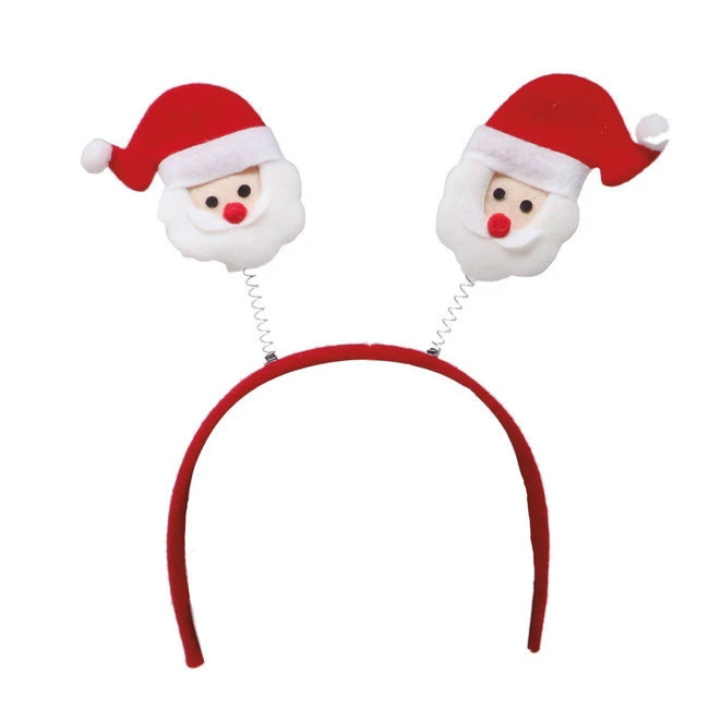 Questo è un cerchietto di plastica ricoperto di tessuto e ha 2 molle sulla parte superiore con 2 teste di Babbo Natale.