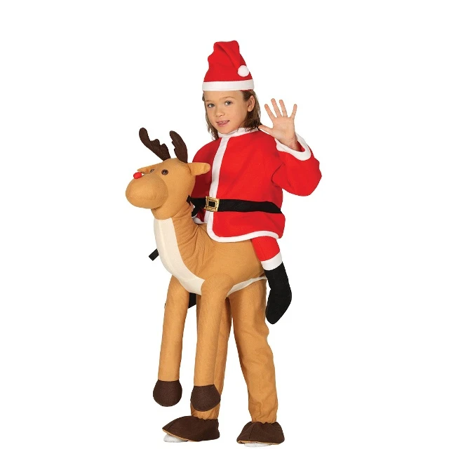 Un modello molto divertente in cui i più piccoli saranno vestiti come Babbo Natale in sella a una renna.