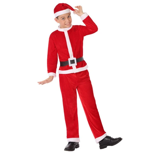 Costume da Babbo Natale per bambini. Si tratta di un costume molto economico, ideale per le feste scolastiche. Include pantaloni, cappello e giacca, che non ha bottoni ma può essere chiusa con la cintura che include il costume. Ci sono anche modelli per il resto della famiglia che potete trovare in articoli correlati.