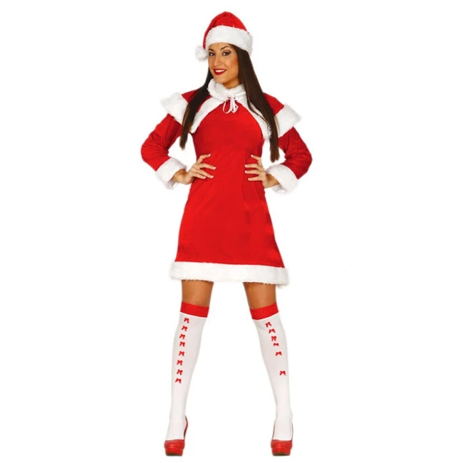 E’ composto da un abito rosso a maniche lunghe con le maniche orlate e il fondo di una gonna con ecopelliccia bianca.