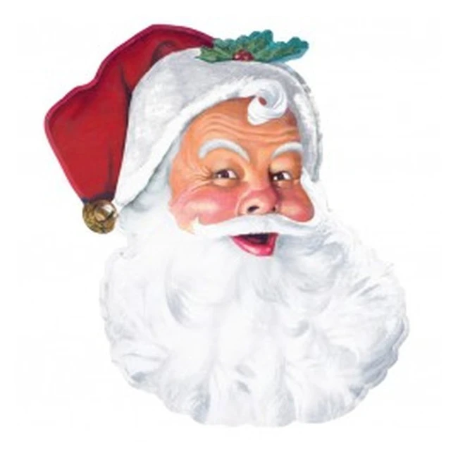 Un foglio di cartone stampato su entrambi i lati con l’immagine del volto di Babbo Natale che si può appendere al muro o appendere al soffitto.