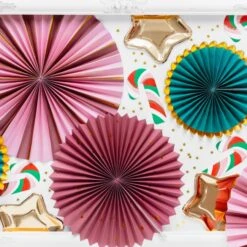 Ciondoli Rotondi A Forma Di Ventaglio Di Natale Rosa – 3 Pezzi.