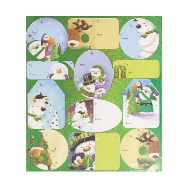 Bellissimi adesivi in stile natalizio per mettere il nome del fortunato sui regali.
