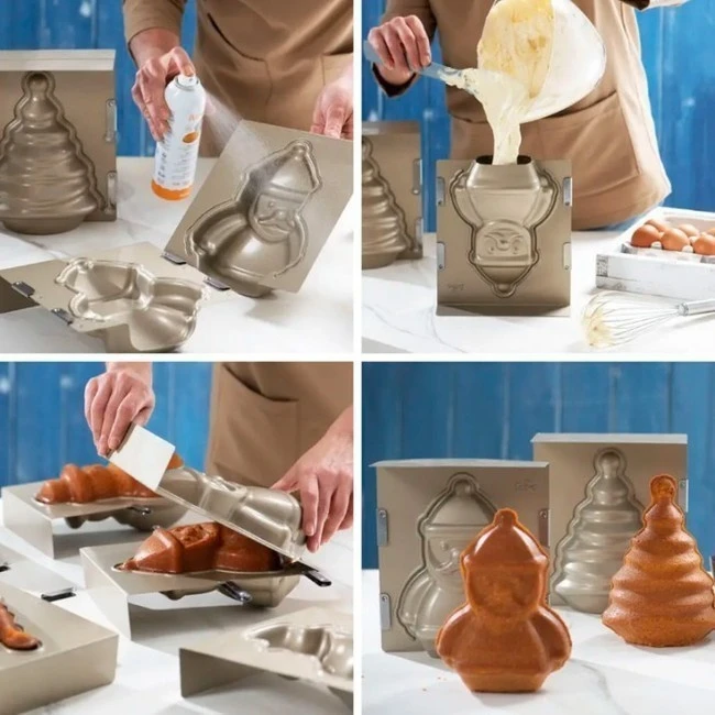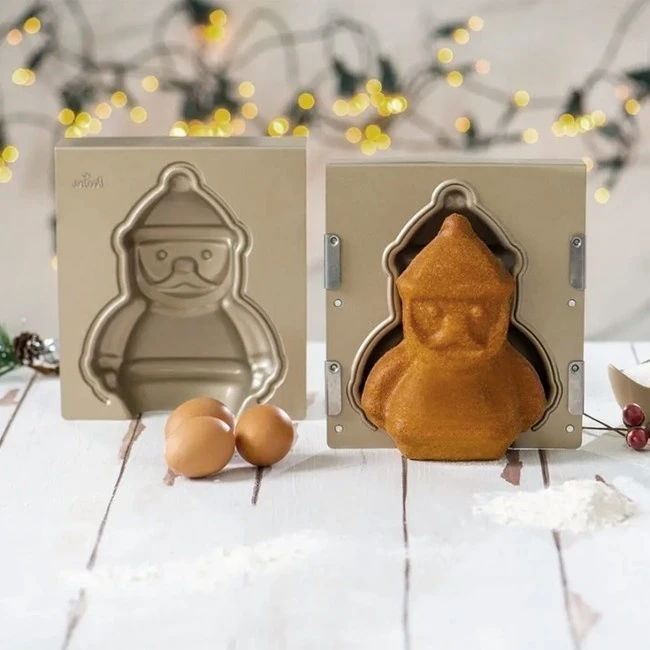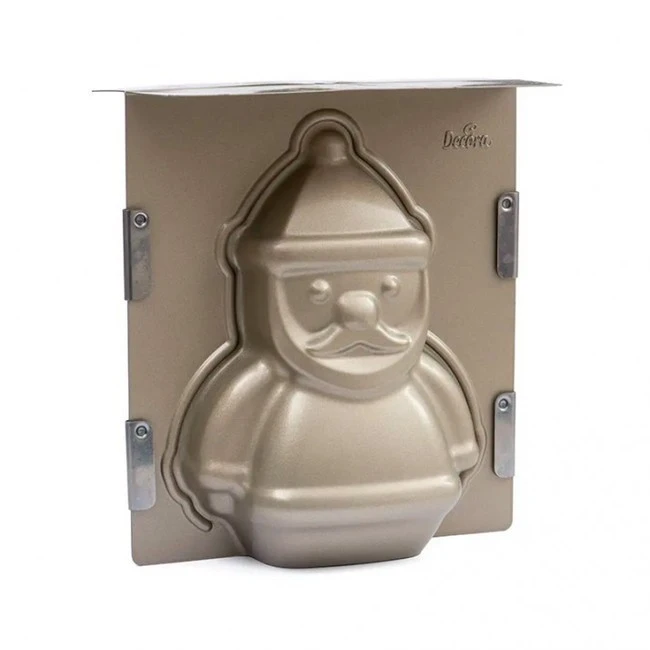 Con questo stampo in metallo è possibile creare una figura tridimensionale di Babbo Natale. È composto da 2 parti che si uniscono per cuocerlo in forno a testa in giù e mantenerne la forma.