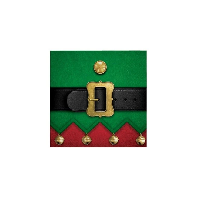 Divertenti tovaglioli con l’immagine di un abito da elfo che combina i colori rosso e verde.